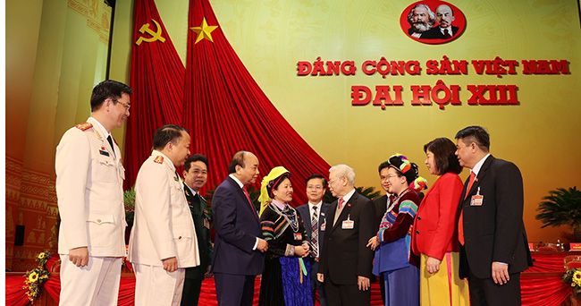 Tổng Bí thư Nguyễn Phú Trọng với các đại biểu tham dự Đại hội đại biểu toàn quốc lần thứ XIII của Đảng_Ảnh: TTXVN