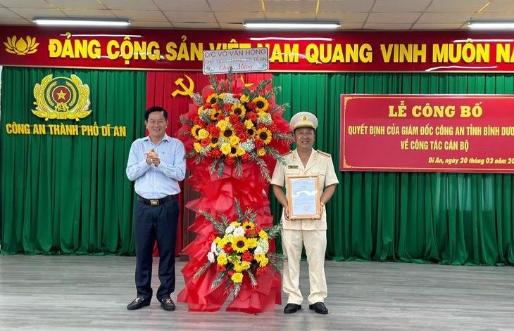Vậy là sau hơn 2 tháng khuyết chức danh khi thượng tá Võ Văn Hồng (nguyên trưởng Công an) trước đó đã được bầu giữ chức vụ Chủ tịch UBND thành phố Dĩ An, thì địa bàn giáp ranh TP.HCM với Bình Dương và Đồng Nai đã có tân Trưởng Công an. Buổi lễ trao quyết định bổ nhiệm do Đại tá Trần Văn Chính - Phó Giám đốc, Thủ trưởng Cơ quan CSĐT Công an tỉnh Bình Dương thừa ủy quyền của Giám đốc Công an tỉnh thực hiện.