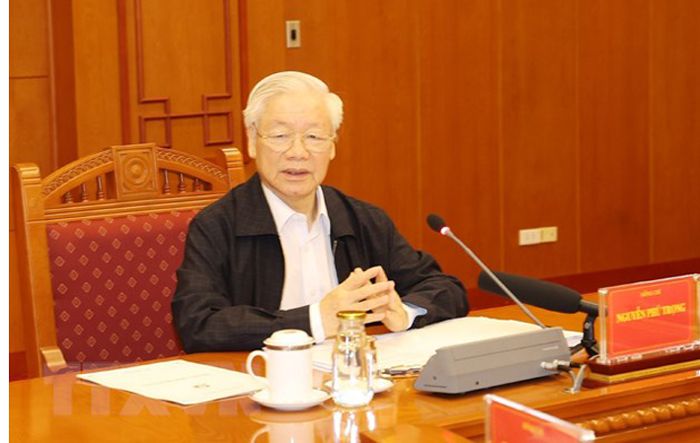 Tổng Bí thư, Chủ tịch nước Nguyễn Phú Trọng phát biểu chỉ đạo cuộc họp. (Ảnh: TTXVN)
