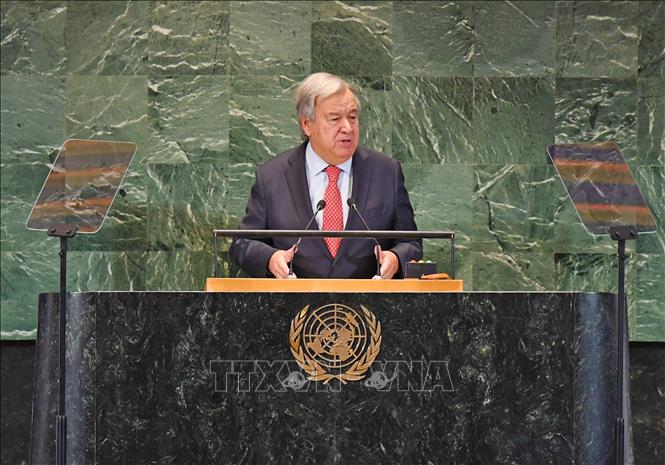 Tổng Thư ký LHQ Antonio Guterres phát biểu tại phiên khai mạc Hội nghị thượng đỉnh Các Mục tiêu phát triển bền vững (SDG) ở New York, ngày 18/9/2023 (giờ Mỹ). Ảnh: THX/TTXVN