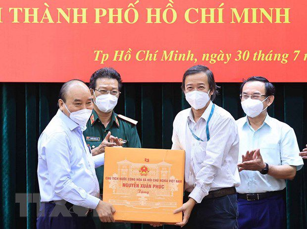 Chủ tịch nước Nguyễn Xuân Phúc tặng quà cho các bệnh viện Thành phố Hồ Chí Minh - Ảnh: TTXVN
