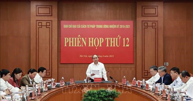 Sáng ngày 29/4, tại Trụ sở Trung ương Đảng đã diễn ra Phiên họp thứ 12 của Ban Chỉ đạo Cải cách Tư pháp Trung ương. Chủ tịch nước Nguyễn Xuân Phúc, Trưởng ban Chỉ đạo chủ trì phiên họp.