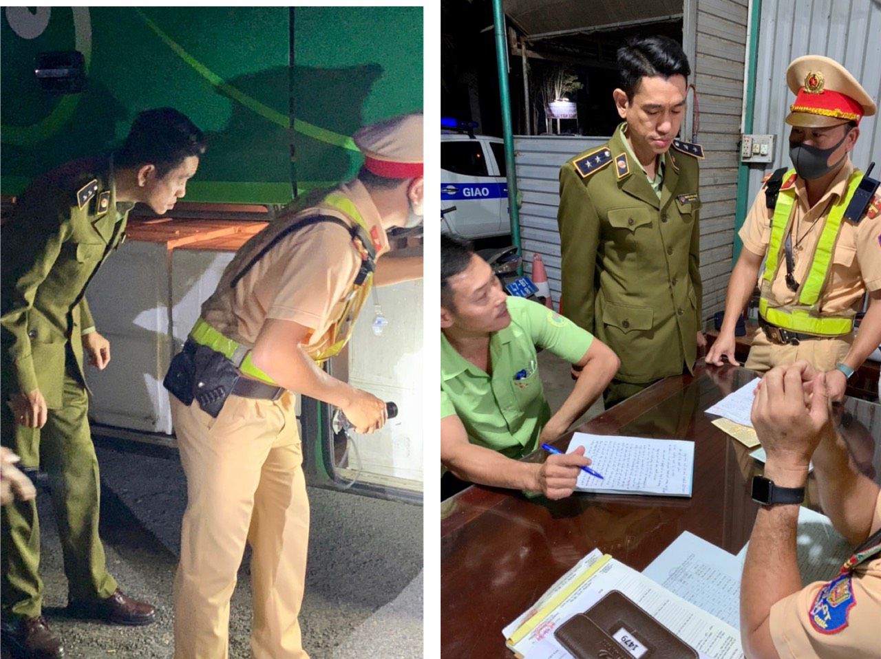 Tổ Thương mại điện tử - Cục Quản lý thị trường Đắk Lắk phối hợp với lực lượng CSGT Công an tỉnh Đắk Lắk kiểm tra chiếc xe khách giường nằm mang BKS: 81B-014.79.