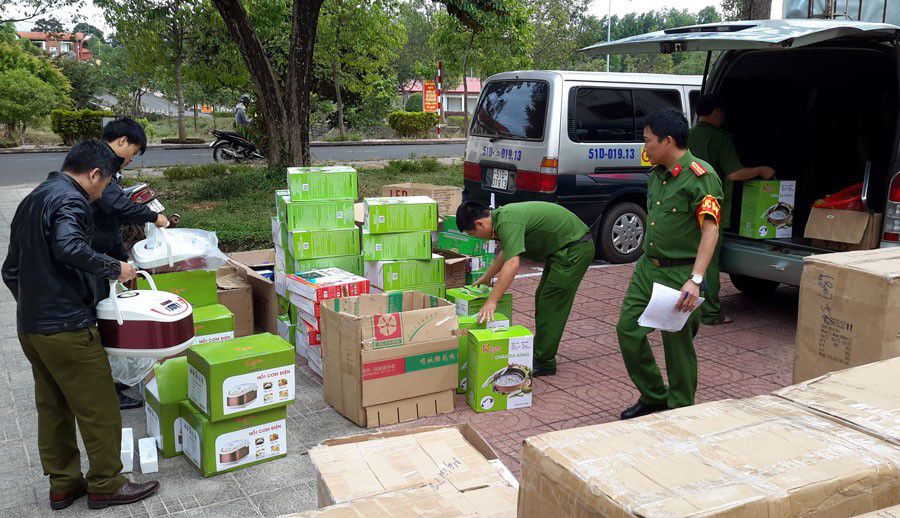 Phòng Cảnh sát kinh tế Công an tỉnh Đắk Nông bắt, xử lý một vụ vận chuyển hàng hóa không rõ nguồn gốc xuất xứ. (Ảnh chụp trong thời gian chưa có dịch Covid-19).