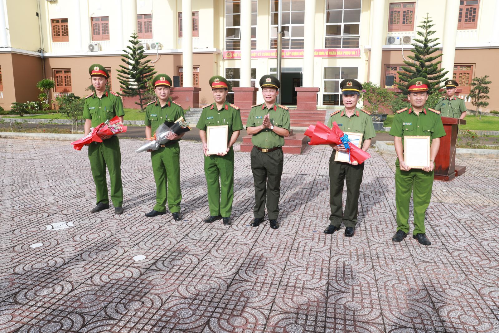 Đại tá Hồ Văn Mười, Giám đốc Công an tỉnh Đắk Nông trao thưởng cho các tập thể, cá nhân có thành tích xuất sắc trong công tác đấu tranh, phòng, chống tội phạm.