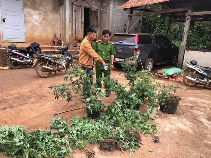 Công an xã Nâm N’jang, huyện Đắk Song bắt quả tang các đối tượng trồng cây cần sa trái phép.