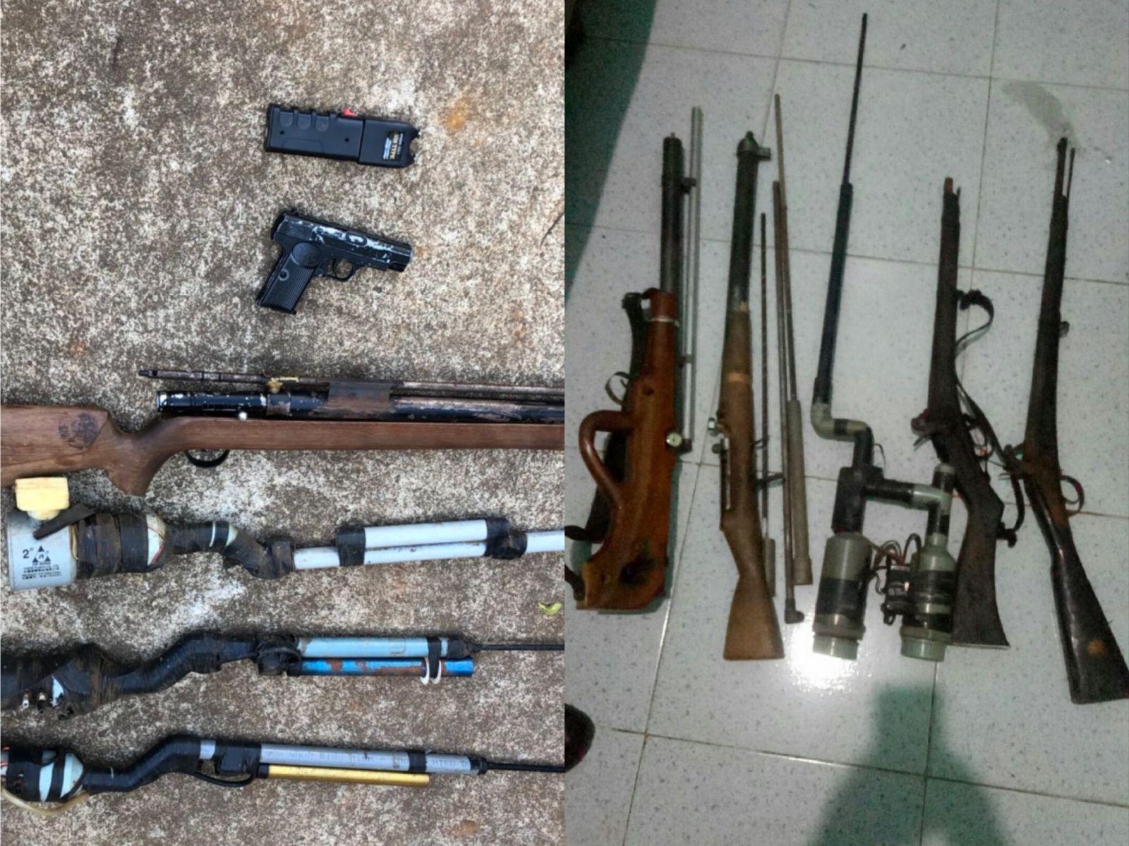 Công an xã Tân Thành, huyện Krông Nô thu giữ nhiều cây súng tự chế trong lúc khám xét chỗ ở của đối tượng ma túy.