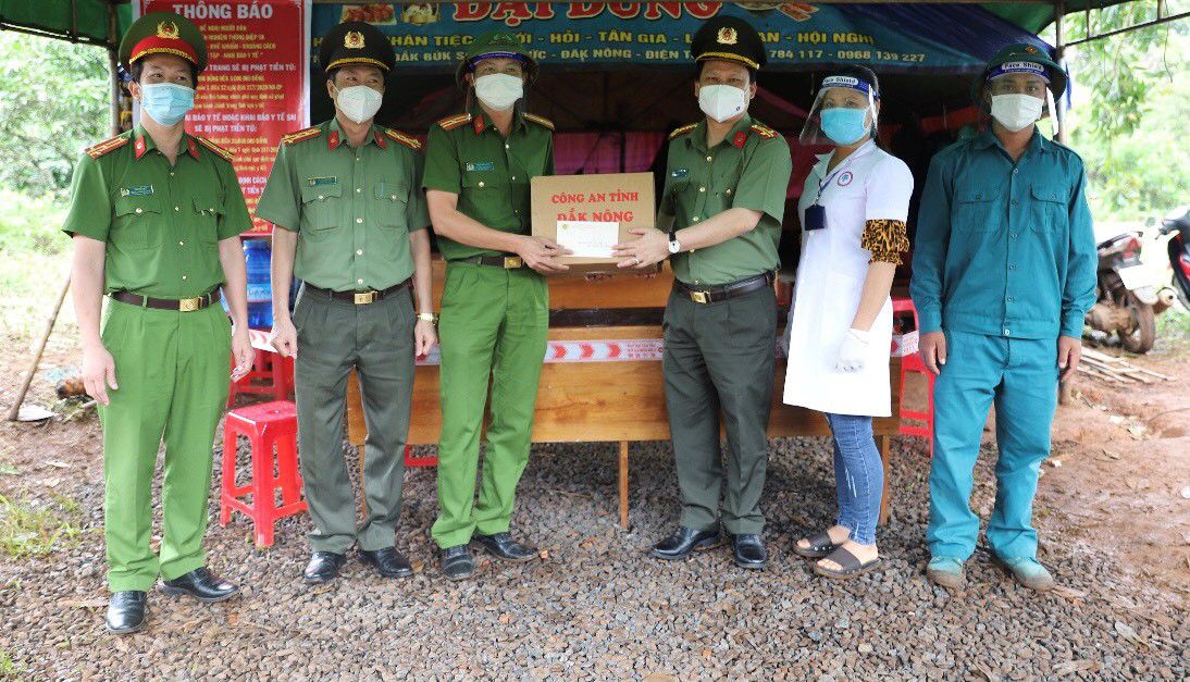 Song song với đó, công tác phòng chống dịch Covid-19 luôn được Đảng ủy, lãnh đạo Công an tỉnh quan tâm, chỉ đạo sát sao, quyết liệt với các giải quyết đồng bộ, phù hợp với đặc điểm tình hình địa bàn. Chủ động xây dựng và bổ sung phù hợp với tình hình, sẵn sàng đáp ứng tốt yêu cầu bảo đảm ANTT, phòng, chống dịch bệnh trên địa bàn theo phương châm “4 tại chỗ. Đồng thời huy động hơn 2000 lượt cán bộ, chiến sĩ phối hợp với các lực lượng chức năng thực hiện có hiệu quả nhiệm vụ “kép” vừa bảo đảm ANTT, vừa phát huy tốt vai trò xung kích nòng cốt tuyến đầu của tuyến đầu trong công tác phòng, chống dịch, góp phần khống chế, ngăn chặn dịch Covid-19 xâm nhập và lây lan trên địa bàn tỉnh. Lực lượng Công an Đắk Nông đã nhanh chóng “chuyển trạng thái” phát huy vai trò nòng cốt, xung kích, đóng góp toàn diên trong công tác phòng, chống dịch Covid-19 ở địa phương; tích cực hưởng ứng phong trào thi đua với chủ đề “Lực lượng Công an nhân dân – lá chắn phòng, chống dịch Covid-19 – Thanh bảo kiếm bảo đảm an ninh, an toàn xã hội” với chủ đề “Kiên định bản lĩnh chính trị người chiến sĩ CAND, triệu trái tim, một ý chí, quyết tâm chiến thắng đại dịch Covid-19 do Bộ Công an phát động. Thiết lập 1 cơ sở cách ly tập trung cho CBCS Công an tỉnh, 1 cơ sở cách ly, điều trị cho can, phạm nhân nhiễm Covid-19 tại trại giam; Phối hợp với Sở Y tế thiết lập, vận hành khu thu dung, điều trị bệnh nhân Covid-19 của tỉnh tại Bệnh xá Công an tỉnh, qua đó đã điều trị khỏi bệnh cho 100 bệnh nhân Covid-19.