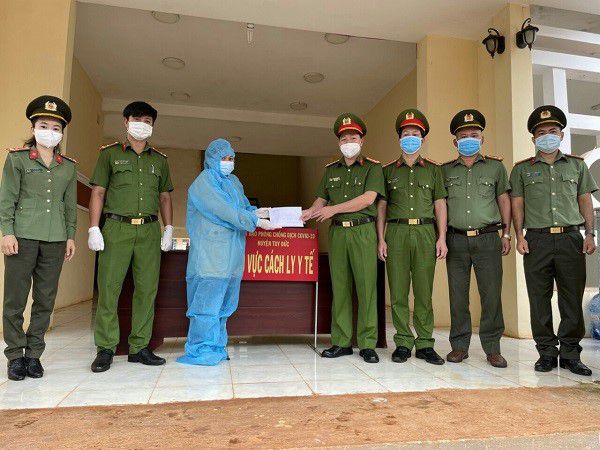 Các đồng chí lãnh đạo Công an tỉnh thường xuyên đến kiểm tra, động viên, trao tặng quà cho các lực lượng tuyến đầu và người dân có hoàn cảnh khó khăn ở các khu cách ly, phong tỏa.
