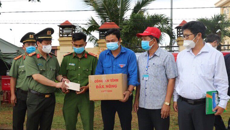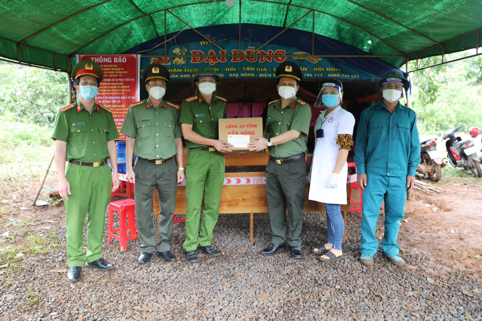 Đại tá Bùi Quang Thanh, Giám đốc Công an tỉnh Đắk Nông thăm, tặng quà, động viên các lực lượng tuyến đầu phòng, chống dịch Covid-19.