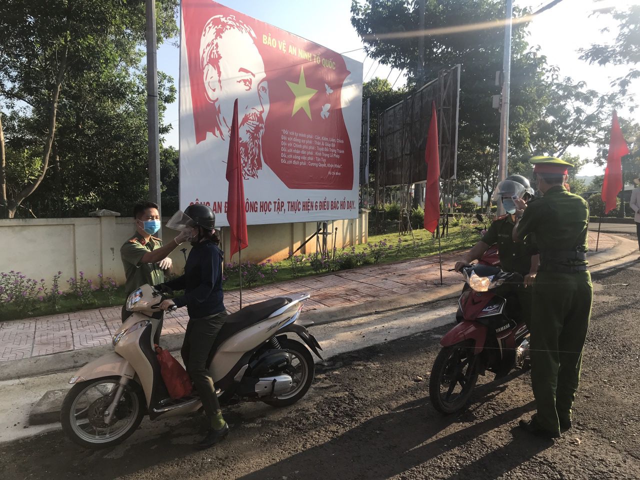 CBCS Công an Đắk Nông thực hiện nhiệm vụ tại điểm chốt kiểm soát, phòng, chống dịch bệnh Covid-19 trên tuyến Quốc lộ 14 đoạn huyện Cư Jút.