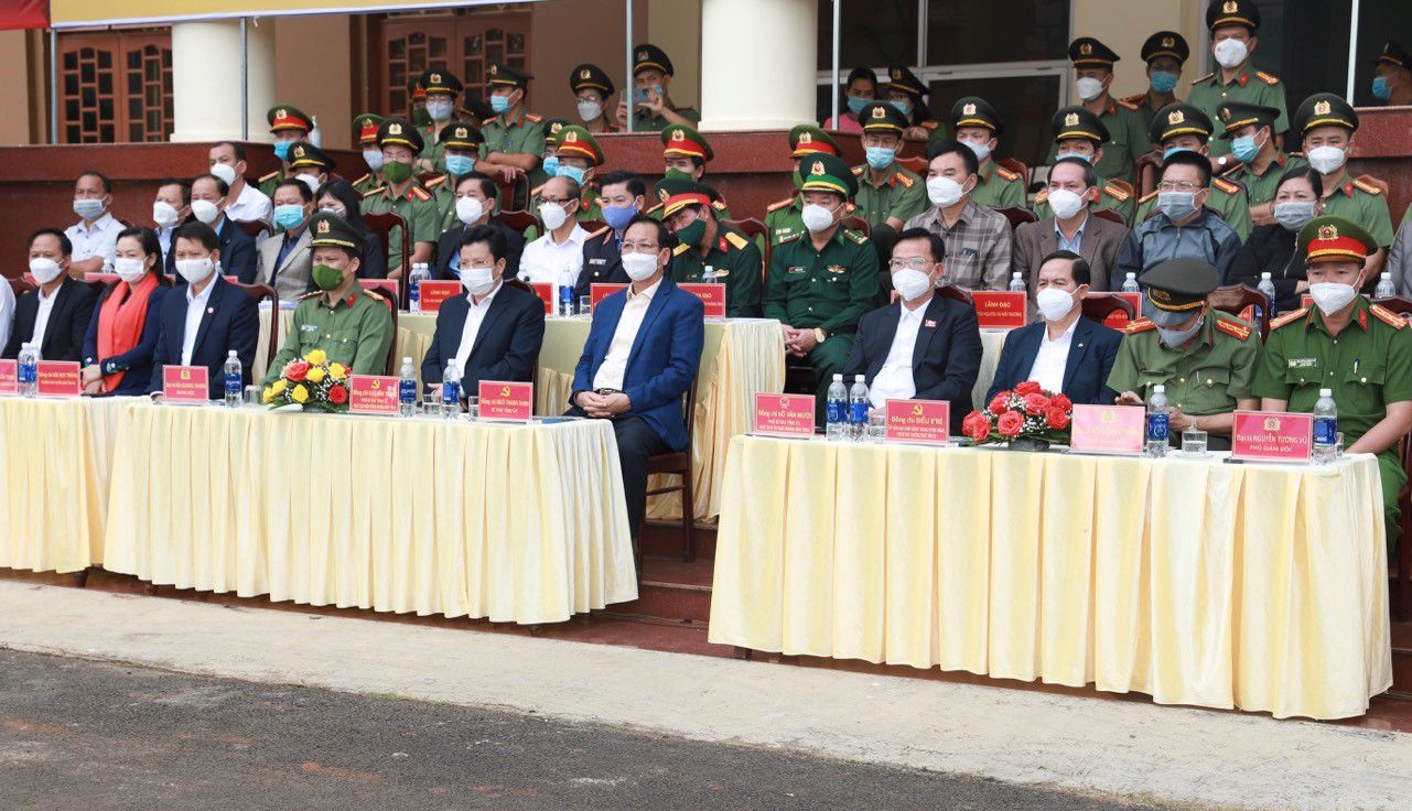Tham dự buổi lễ có các đồng chí: Ngô Thanh Danh, Bí thư Tỉnh ủy, trưởng Đoàn đại biểu Quốc hội tỉnh; Điểu K’ré, Uỷ viên Ban Chấp hành Trung ương Đảng, Phó Bí thư Thường trực Tỉnh ủy; Lưu Văn Trung, Phó Bí thư Tỉnh ủy, Chủ tịch Hội đồng nhân dân tỉnh; Hồ Văn Mười, Phó Bí thư Tỉnh ủy, Chủ tịch UBND tỉnh cùng các đồng chí trong Ban Thường vụ Tỉnh ủy, Ban Chấp hành Đảng bộ tỉnh, lãnh đạo Công an tỉnh, các sở, ban, ngành, lực lượng vũ trang tỉnh; Lãnh đạo, CBCS các phòng nghiệp vụ Công an tỉnh và Công an các huyện, thành phố. Đại tá Bùi Quang Thanh, Ủy viên Ban Thường vụ Tỉnh ủy, Bí thư Đảng ủy, Giám đốc Công an tỉnh chủ trì buổi lễ.