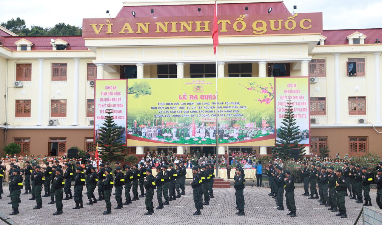 Thực hiện mệnh lệnh của đồng chí Bộ trưởng Bộ Công an, trong 2 ngày (15 và 16) tháng 12, Công an tỉnh Đắk Nông đã tổ chức Lễ ra quân thực hiện đợt cao điểm tấn công, trấn áp tội phạm, bảo đảm an ninh, trật tự (ANTT) dịp Tết Nguyên đán Nhâm Dần 2022 và báo cáo kết quả công tác huấn luyện nâng cao trong lực lượng Cảnh sát cơ động, Cảnh sát đặc nhiệm năm 2021.