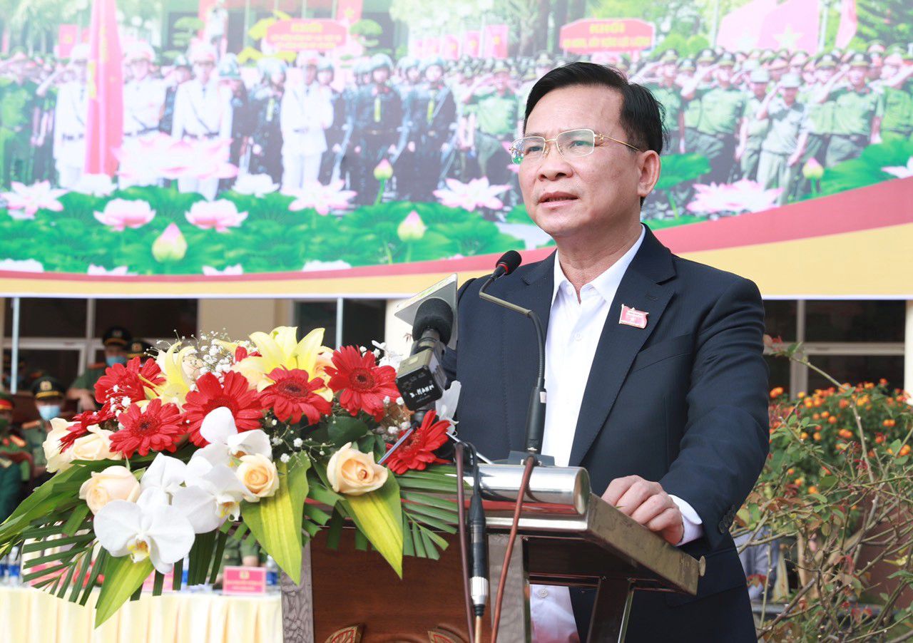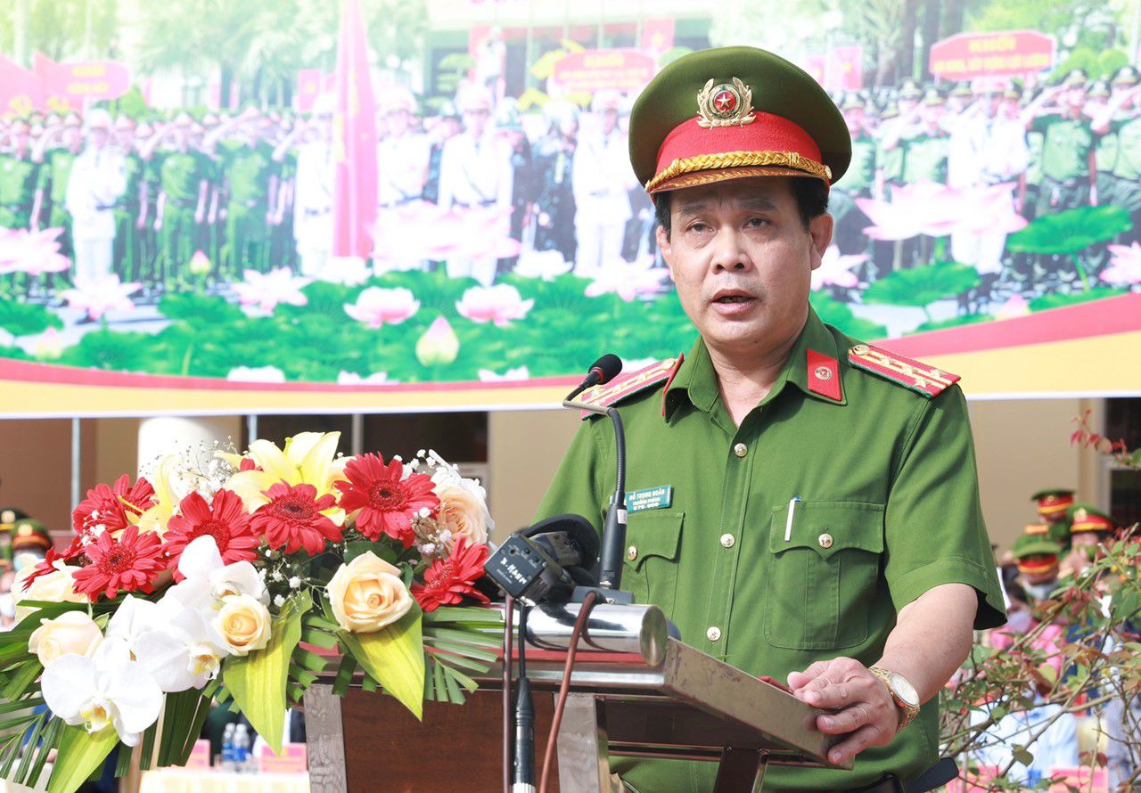 Tại buổi lễ, Đại tá Đỗ Trọng Hoãn, Trưởng phòng Cảnh sát hình sự Công an tỉnh, đại diện cho CBCS toàn lực lượng Công an tỉnh phát biểu thể hiện quyết tâm thực hiện có hiệu quả đợt cao điểm nhằm bảo đảm tuyệt đối an toàn dịp Tết Nguyên đán Nhâm Dần 2022.