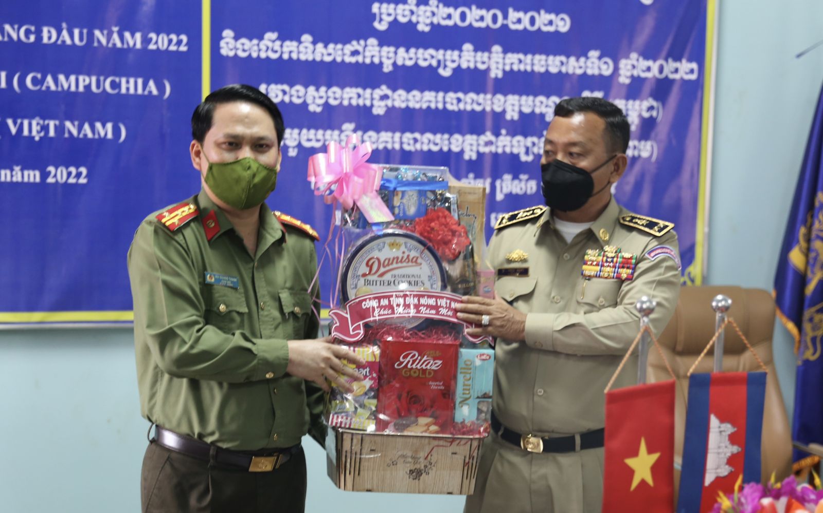 Nhân dịp đón Tết cổ truyền Chol Chnam Thmay, ngày 12/4/2022, Đoàn công tác của Công an tỉnh Đắk Nông do Đại tá Bùi Quang Thanh, Giám đốc Công an tỉnh làm trưởng đoàn đã sang thăm và chúc Tết lực lượng Công an tỉnh Mondulkiri, Vương quốc Campuchia.