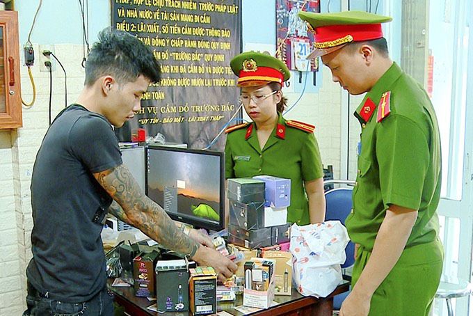Phòng Cảnh sát kinh tế Công an tỉnh kiểm tra, thu giữ lô thuốc lá điện tử không rõ nguồn gốc xuất xứ tại một cơ sở ở phường Vĩnh Phước, TP. Nha Trang,(ảnh Baokhanhhoa.vn).