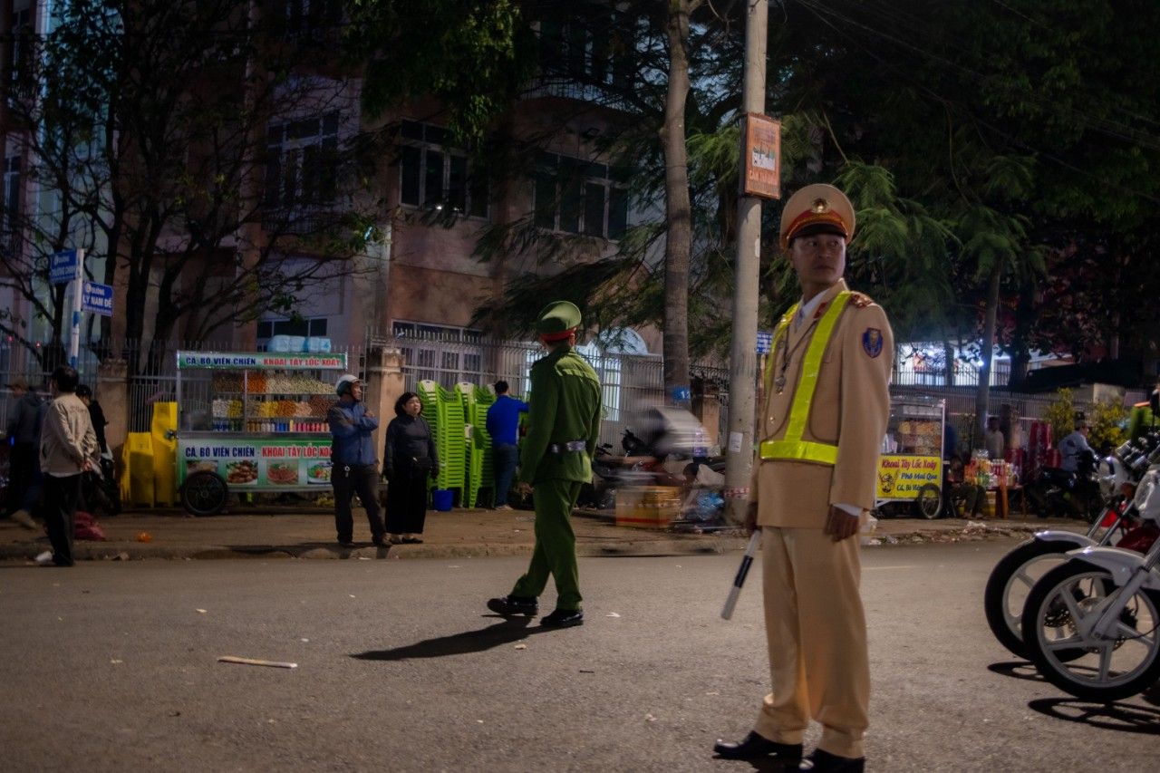Bên cạnh việc triển khai lực lượng tại khu vực Quảng trường 10-3, hơn 100 CBCS thuộc các Đội nghiệp vụ đã phối hợp với Công an các phường, xã có mặt tại các chốt điểm, tuần tra, tăng cường về cơ sở duy trì trật tự công cộng, ATGT, nhắc nhở người dân không đốt pháo, chấp hành nghiêm quy định của pháp luật. Cũng vào đêm giao thừa, Đồng chí Thượng tá Bùi Trọng Tuấn đã trực tiếp chỉ đạo công tác bảo đảm an ninh trật tự tại điểm bắn pháo hoa và thực hiện kiểm tra công tác trực, ứng trực, làm nhiệm vụ tại công an một số phường, xã.