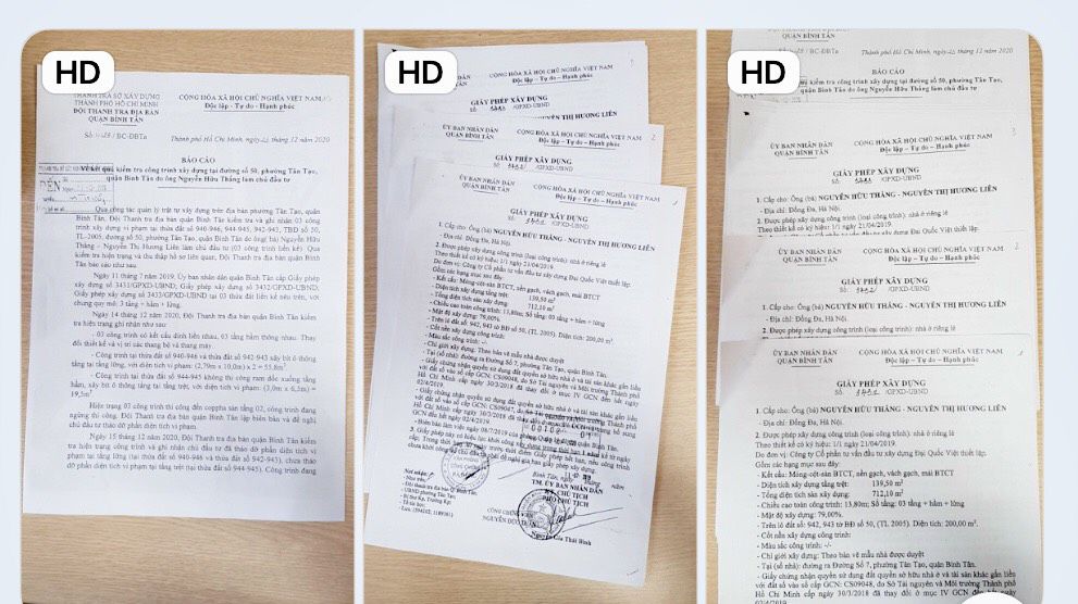 Sau khi phóng viên trao đổi với ông Nguyễn Văn Lâm – Chánh Văn phòng UBND quận Bình Tân, thì có sự chỉ đạo Phòng Quản lý đô thị quận Bình Tân cung cấp toàn bộ hồ sơ Giấy phép xây dựng của 03 lô trên và 02 Biên bản làm việc với đại diện chủ đầu tư của Đội Thanh tra xây dựng địa bàn quận Bình Tân ghi ngày 14/12/2020 và ngày 15/12/2020, cùng với bản Báo cáo của Đội Thanh tra xây dựng địa bàn quận Bình Tân gửi Thanh Tra Sở Xây dựng TP HCM số 14429/BC-ĐBTa ngày 23/12/2020 về kết quả kiểm tra công trình xây dựng tại đường số 50, phường Tân Tạo, quận Bình Tân, do ông Nguyễn Hữu Thắng làm chủ đầu tư. Trong bản Báo cáo đã chỉ rõ những sai phạm của công trình và Đội Thanh tra địa bàn quận Bình Tân tiếp tục phối hợp UBND phường Tân Tạo, Đội quản lý trật tự đô thị giám sát việc ngưng thi công của chủ đầu tư.