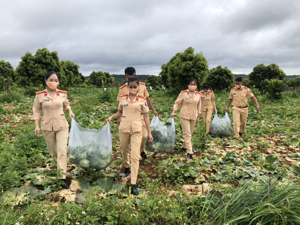 Trong 2 ngày 14 và 15 tháng 8 năm 2021 theo chân CBCS Phòng CSGT Công an tỉnh Đắk Nông vượt chặng đường hơn 50km về xã biên giới Thuận Hà, huyện Đắk Song để thu mua các loại nông sản như khoai lang, bí đỏ, bí xanh, bắp cải.... để vận chuyển về đơn vị làm sạch, phân loại, đóng gói gửi tặng, hỗ trợ CBCS lực lượng CSGT Công an Thành phố Hồ Chí Minh đang ngày đêm căng mình chống dịch, chúng tôi mới thấy được tinh thần trách nhiệm, hướng về tâm dịch của mỗi CBCS Phòng CSGT. Vừa tới nơi, được các chủ vườn hướng dẫn, CBCS mỗi người một việc tranh thủ thời gian bắt tay ngay vào công việc, tích cực thu hái các loại nông sản trước khi trời đổ mưa.