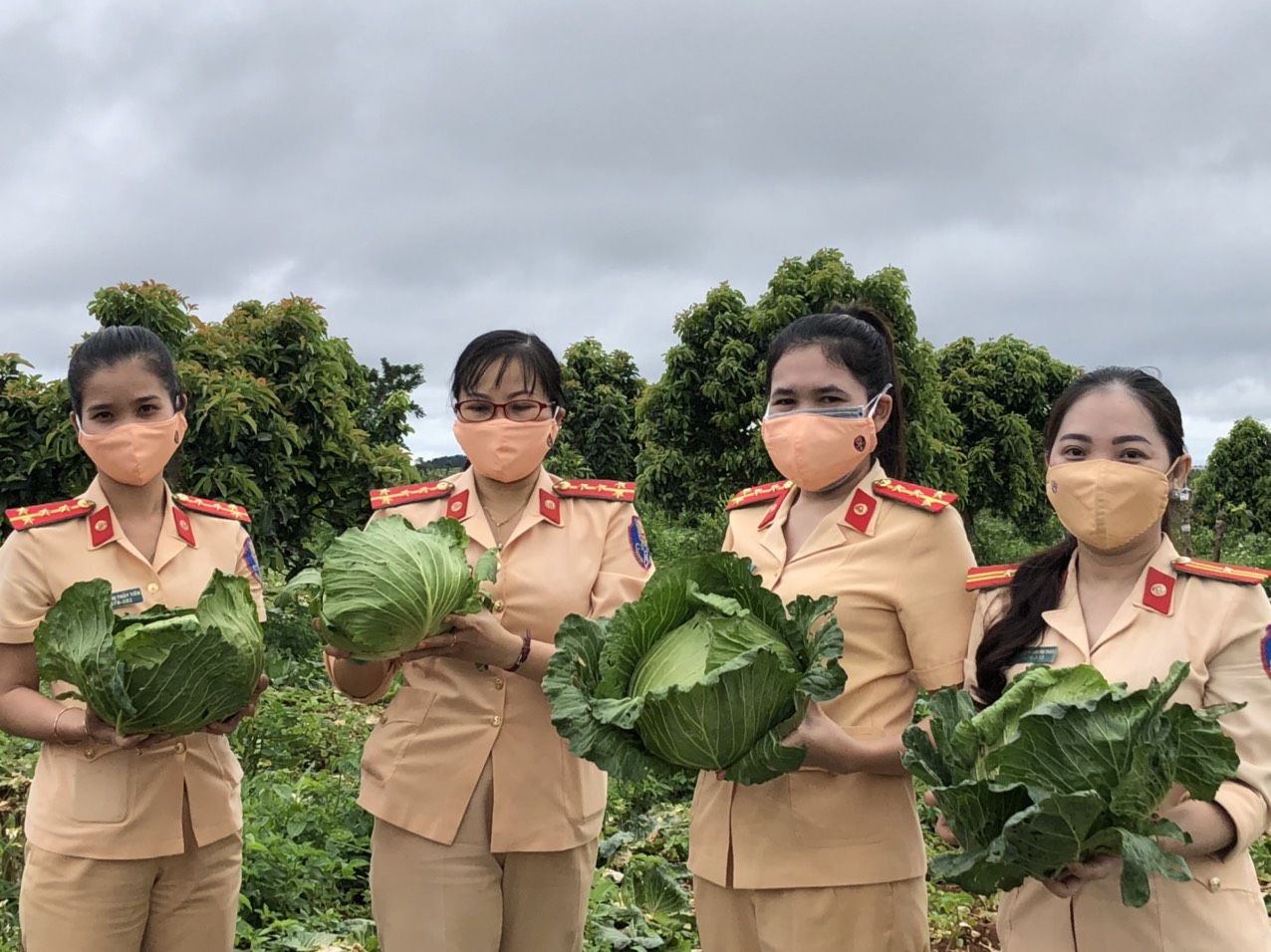 CBCS Phòng CSGT Công an tỉnh Đắk Nông tranh thủ ngày nghỉ cuối tuần về xã biên giới thu mua, vận chuyển nông sản hỗ trợ lực lượng tuyến đầu tại Thành phố Hồ Chí Minh chống dịch.