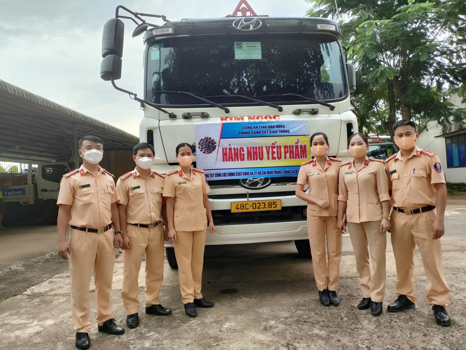 Riêng trong 2 ngày (14 và 15) tháng 8, từ sự đóng góp của lãnh đạo, chỉ huy, CBCS trong đơn vị với tổng số tiền hơn 50 triệu đồng, Phòng CSGT đã huy động CBCS tranh thủ ngày nghỉ cuối tuần tổ chức cho CBCS đi chợ, chế biến hơn 70 phần cơm (ăn sáng, ăn trưa, ăn chiều) phục vụ các y, bác sĩ và bệnh nhân đang điều trị tại khu cách ly điều trị của tỉnh (Bệnh xá Công an tỉnh) cũng như cử CBCS về tận cơ sở thu mua 10 tấn rau, củ, quả đưa về cơ quan rồi làm sạch, phân loại, đóng gói để gửi tặng, hỗ trợ CBCS Phòng CSGT Công an Thành phố Hồ Chí Minh, là một trong những lực lượng tuyến đầu đang ngày đêm căng mình bám chốt, bám cơ sở để chống dịch trong điều kiện còn nhiều khó khăn, vất vả với mong muốn chia sẻ, động viên, hỗ trợ các đồng nghiệp vượt qua khó khăn, hoàn thành tốt nhiệm vụ được giao, góp phần lan tỏa hình ảnh đẹp về người chiến sĩ CSGT Công an Đắk Nông trong cuộc chiến với đại dịch Covid-19.