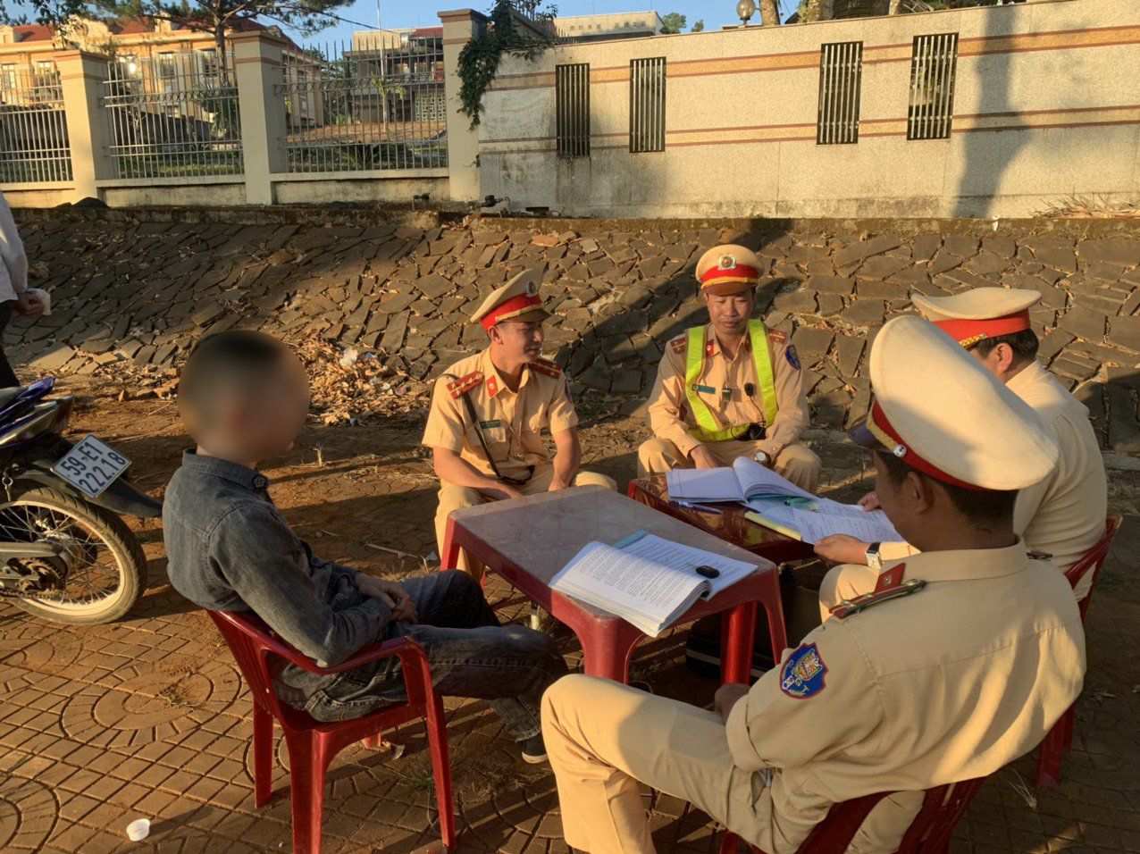 Tiếp tục phát huy những kết quả đã đạt được trong thực hiện đợt cao điểm đảm bảo trật tự an toàn giao thông, ngày 13/01 Tổ công tác của Phòng CSGT Công an tỉnh phối hợp với đội CSGT huyện Đắk R’lấp đã phát hiện đối tượng điều khiển xe máy dương tính với ma túy. Tại km 1926, đường Hồ Chí Minh đoạn qua Kiến Đức, huyện Đắk R’lấp, tỉnh Đăk Nông, Tổ công tác của Phòng CSGT Công an tỉnh do Trung tá Đậu Văn Hoành làm tổ trưởng cùng các đồng chí Dương Quốc Tuấn, Phan Huy Thuỷ, Võ Quốc Giáp, Nguyễn Hùng Tiến đã phối hợp với Đội CSGT huyện Đắk R’lấp tiến hành đo nồng độ cồn và test ma tuý đối với người điều khiển phương tiện tham gia giao thông thì phát hiện 2 thanh niên không đội mũ bảo hiểm có nhiều biểu hiện nghi vấn.