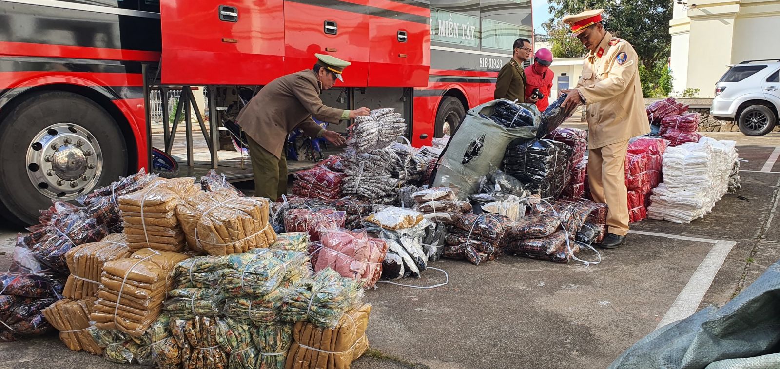 Ngày 17/1, Phòng CSGT Công an tỉnh Đắk Lắk phối hợp với Cục quản lý thị trường Đắk Lắk phát hiện xe khách chở số lượng lớn thời trang không có hóa đơn, chứng từ.