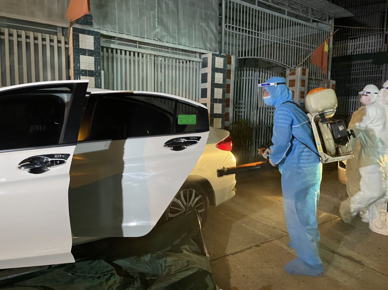 Lực lượng chức năng tiến hành phun khử khuẩn.