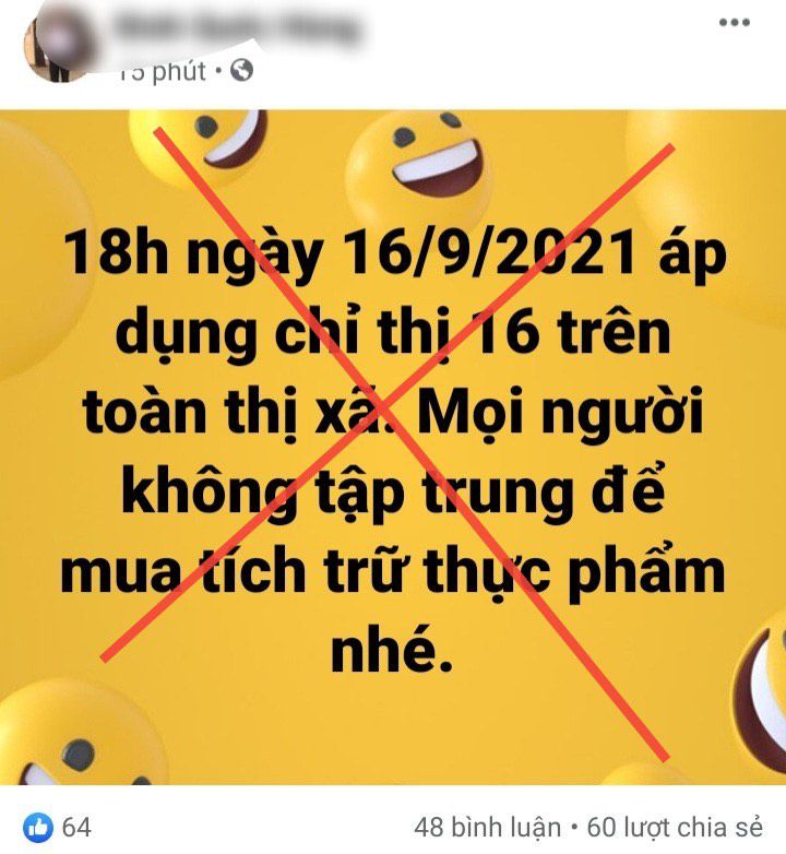 Điều đáng nói, sau khi có thông tin xin ý kiến giãn cách xã hội Chỉ thị 16, ông Đ.Q.H – Chủ tịch phường này đã đăng tải trên trang Facebook cá nhân nội dung: “18h ngày 16/9/2021 áp dụng chỉ thị 16 trên toàn thị xã. Mọi người không tập trung để mua tích trữ thực phẩm nhé”.