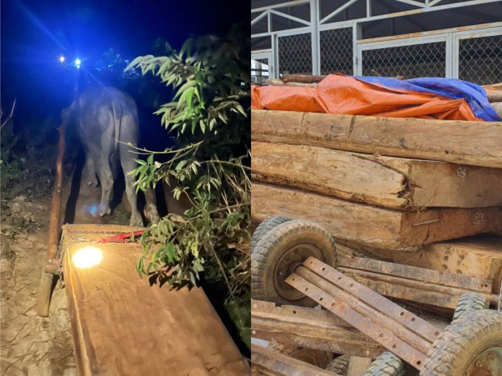 Sau một thời gian mật phục, đến 20 giờ 30 phút ngày 13/2/2021 (đêm mùng 2 Tết), tổ công tác đã bắt quả tang 6 đối tượng đang dùng 5 con trâu kéo gỗ trái phép, gồm NVC (34 tuổi); NTG (39 tuổi); ĐTT (39 tuổi); NHĐ (34 tuổi); ĐXH (34 tuổi) và NQC (38 tuổi) cùng cư trú tại xã Cư Đrăm, huyện Krông Bông.