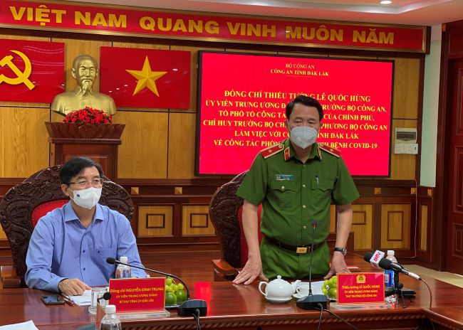 Thiếu tướng Lê Quốc Hùng, Ủy viên Trung ương Đảng, Thứ trưởng Bộ Công an đã đến thăm, kiểm tra công tác phòng, chống dịch COVID -19 tại tỉnh Đắk Lắk. Đồng chí Nguyễn Đình Trung, Ủy viên Trung ương Đảng, Bí thư Tỉnh ủy Đắk Lắk cùng dự, chỉ đạo tại buổi làm việc.