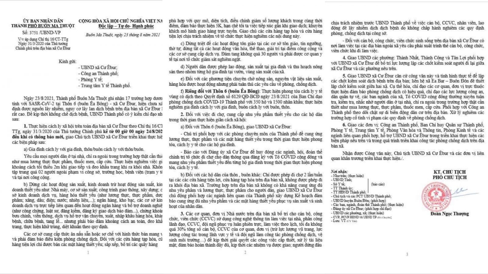 Trước đó, ngành y tế Đắk Lắk ghi nhận nhận 17 trường hợp mắc COVID-19. Các trường hợp này ở 4 hộ khác nhau nhưng đều có quan hệ gia đình. Ngày 22/8, bà H.B.E (trú buôn Ea Bông, xã Cư Êbur, TP Buôn Ma Thuột) đến Trạm Y tế xã Cư Êbur làm xét nghiệm test nhanh kháng nguyên và có kết quả dương tính với SARS-CoV-2.