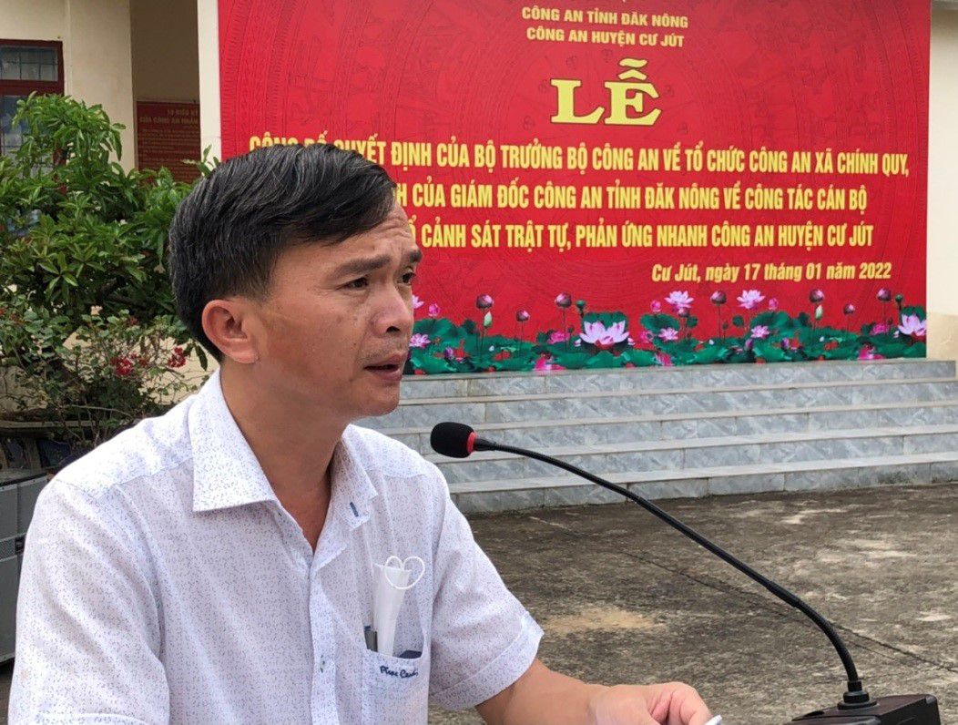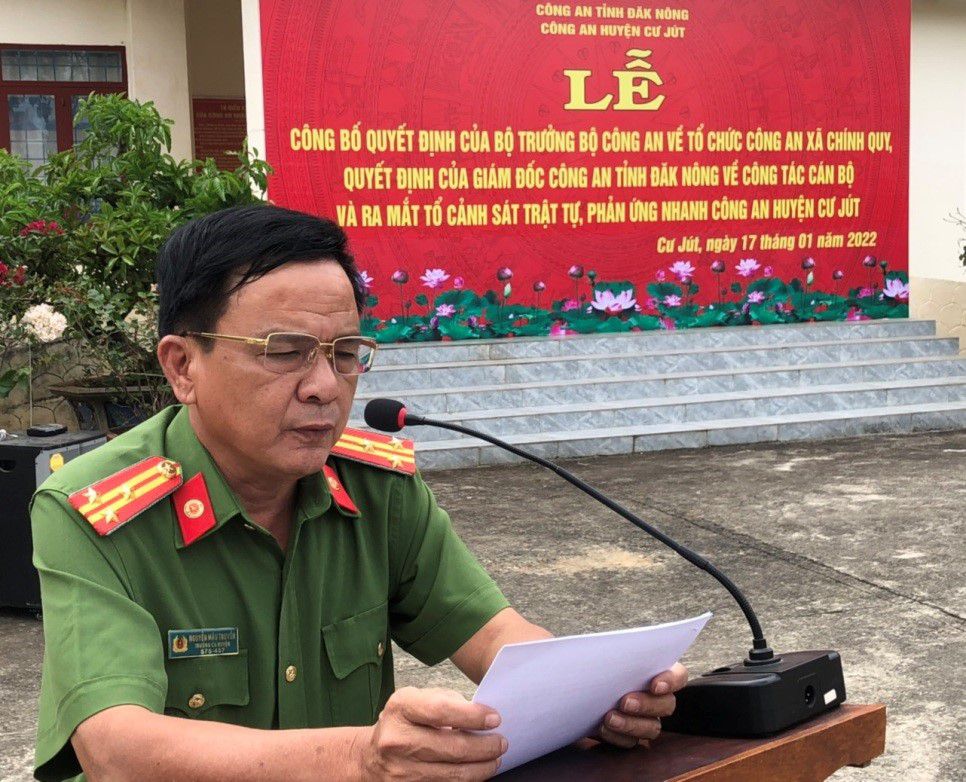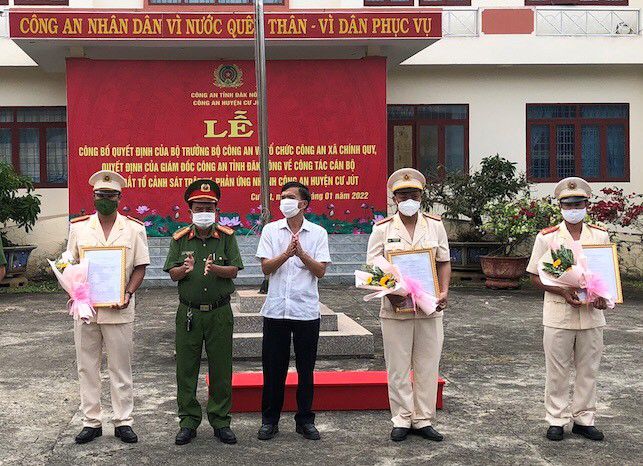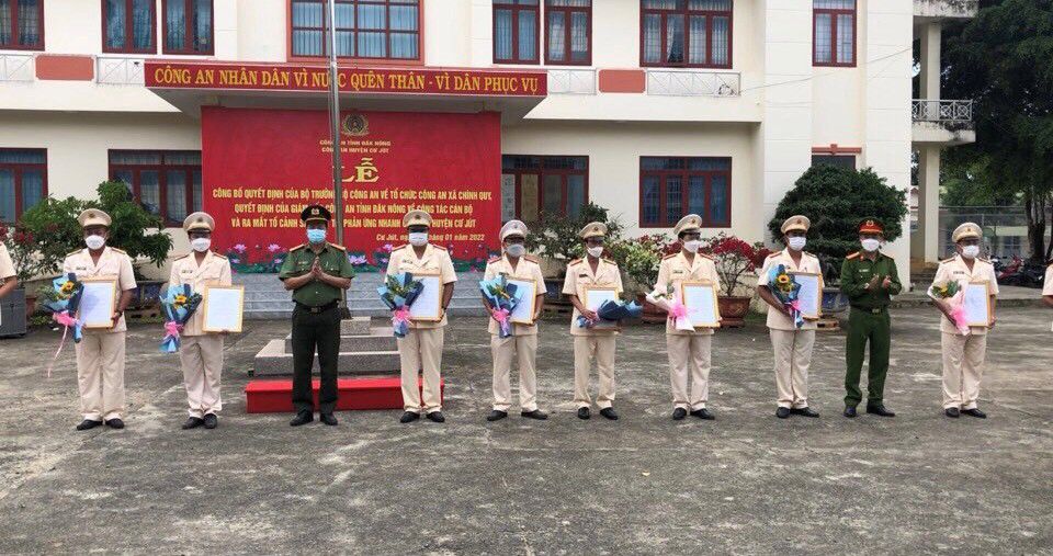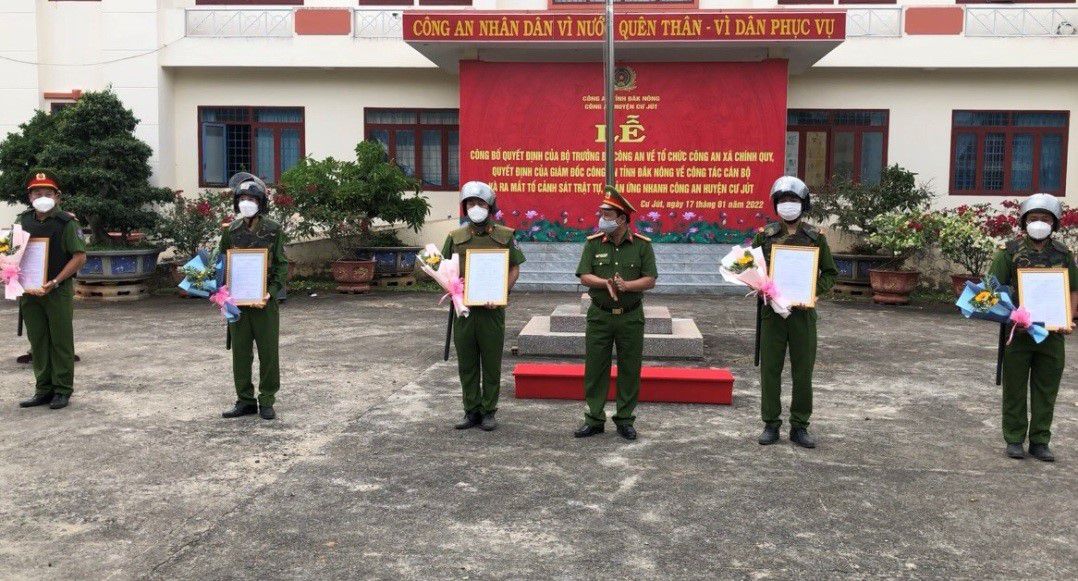 Chiều ngày 17/1/2022, thừa ủy quyền của cấp trên, Công an huyện Cư Jút, tỉnh Đắk Nông đã tổ chức Lễ Công bố Quyết định của Bộ trưởng Bộ Công an về tổ chức Công an xã chính quy; Quyết định của Giám đốc Công an tỉnh về công tác cán bộ và ra mắt Tổ Cảnh sát trật tự, phản ứng nhanh.