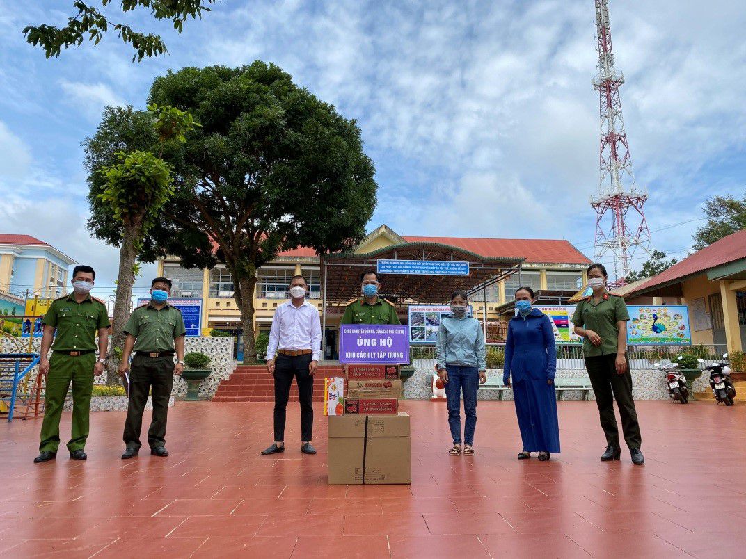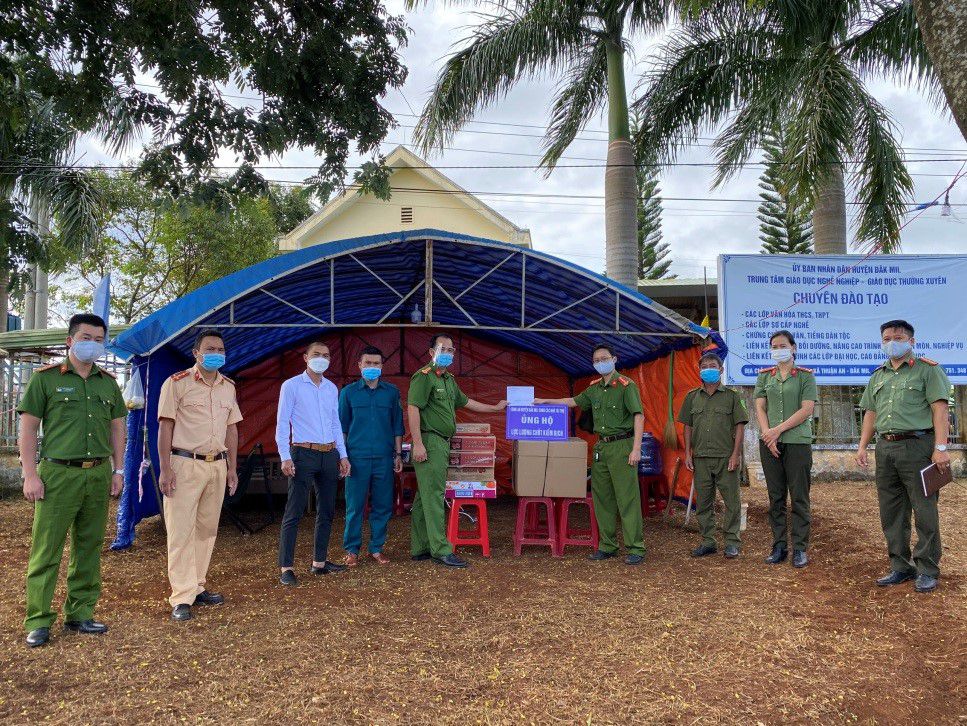 Công an huyện Đắk Mil phối hợp các nhà hảo tâm trao tặng quà cho các lực lượng tuyến đầu phòng, chống dịch trên địa bàn.