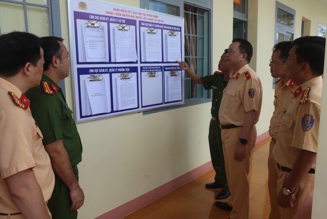 Đại tá Bùi Quang Thanh, Giám đốc Công an tỉnh kiểm tra việc triển khai phân cấp đăng ký xe tại Công an cơ sở.