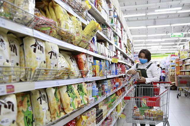 Người tiêu dùng mua hàng tại siêu thị Big C Thăng Long. Ảnh: Thanh Hải