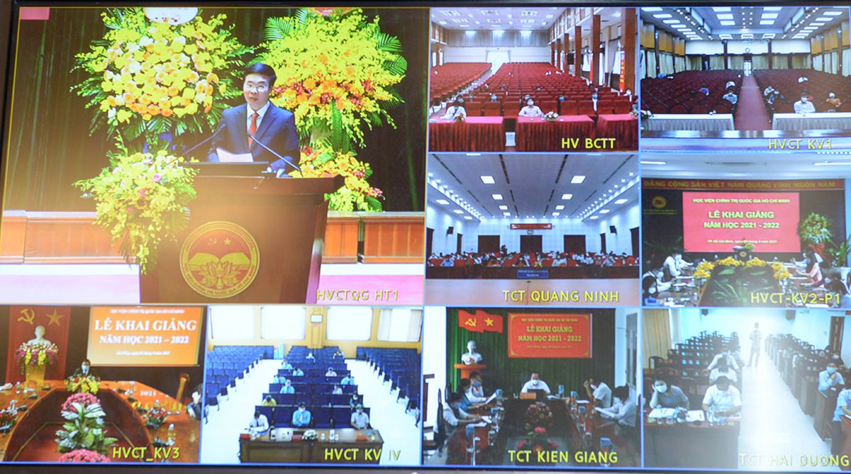 Hôm nay, tôi rất vui mừng dự Lễ khai giảng năm học 2021 - 2022 của Học viện Chính trị quốc gia Hồ Chí Minh. Thay mặt Bộ Chính trị, Ban Bí thư và với tình cảm quý trọng đối với Học viện, với các thầy, cô giáo, các học viên, tôi xin gửi tới các quý vị đại biểu, các thầy, cô giáo, cán bộ, viên chức, các đồng chí học viên của Học viện lời chúc mừng tốt đẹp nhất.