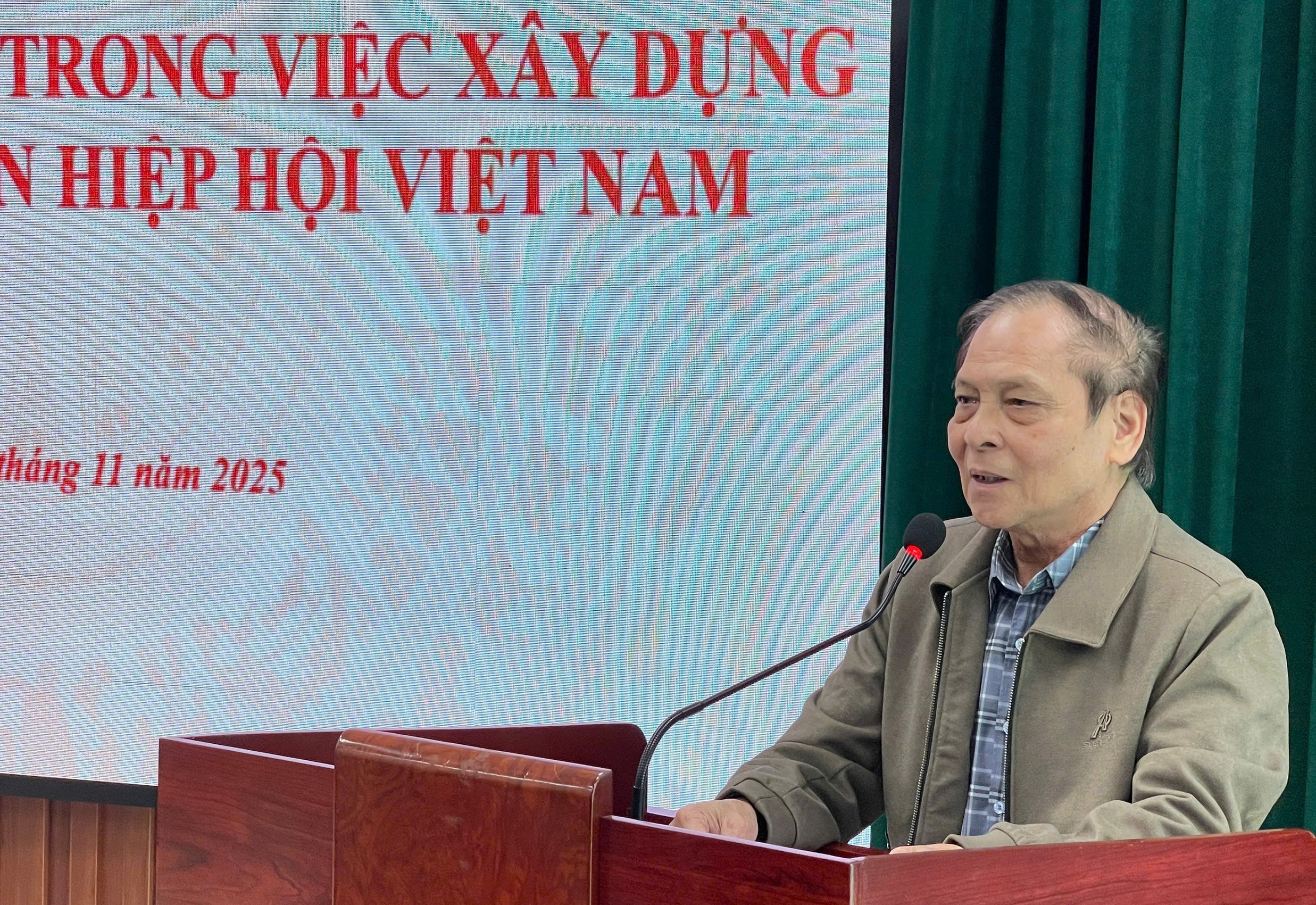 Nhà báo Hồ Quang Lợi, nguyên Phó Chủ tịch Thường trực Hội Nhà báo Việt Nam tham luận tại Hội thảo