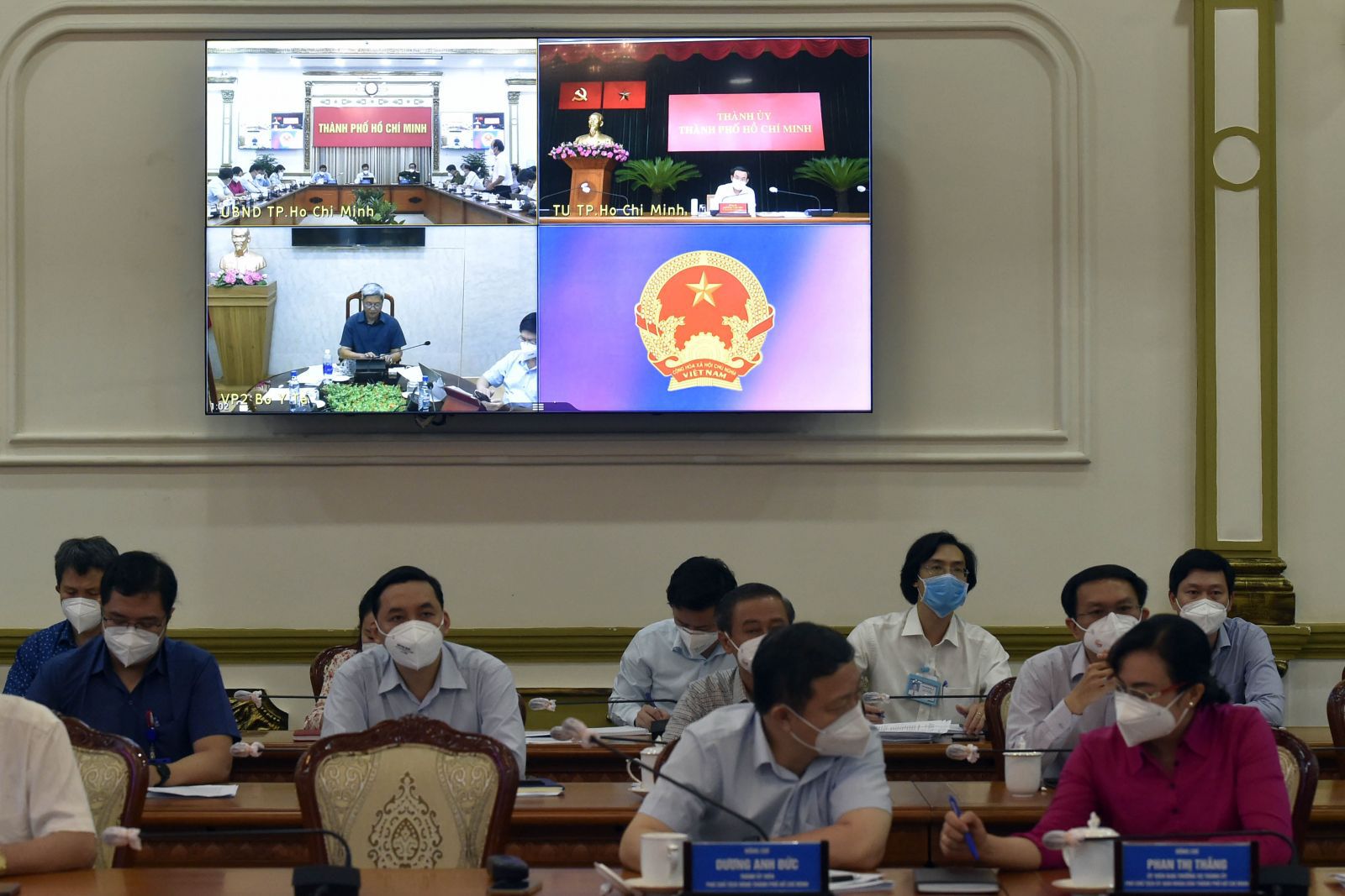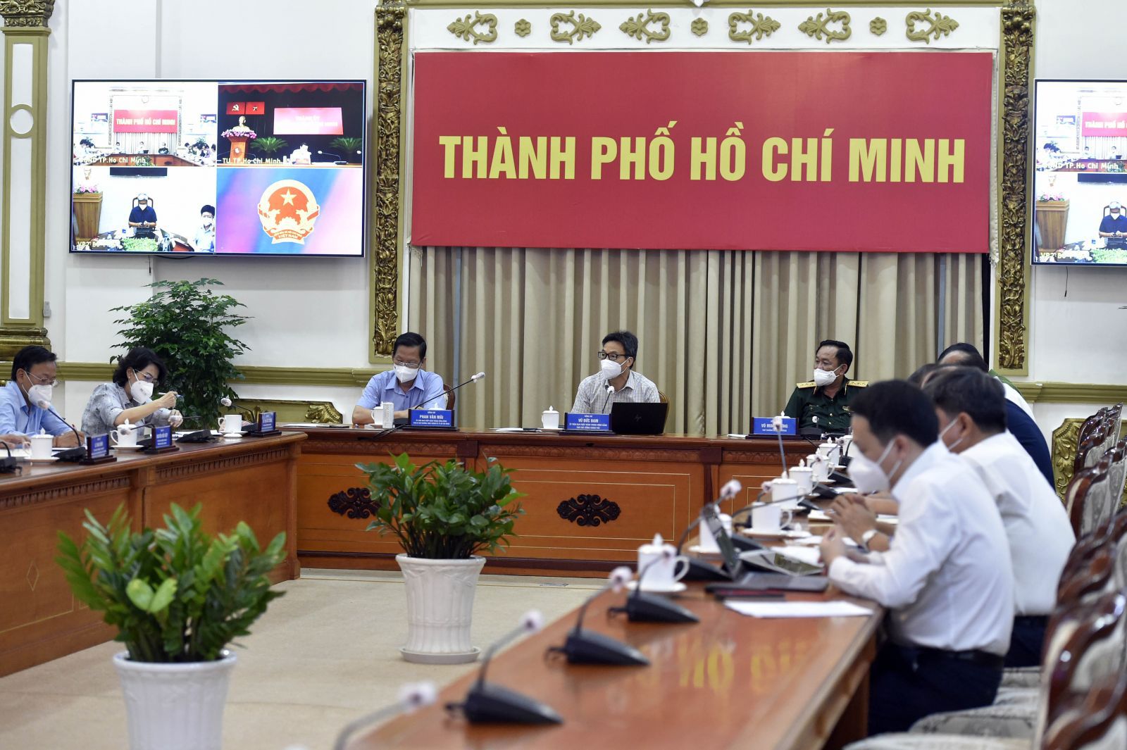Tổ Công tác, lãnh đạo TPHCM đã bàn và thống nhất về sự cần thiết phải huy động thêm những F0 đã khỏi bệnh, đủ sức khoẻ tham gia hỗ trợ phòng, chống dịch và các hoạt động cần thiết khác. Ảnh: VGP/Đình Nam