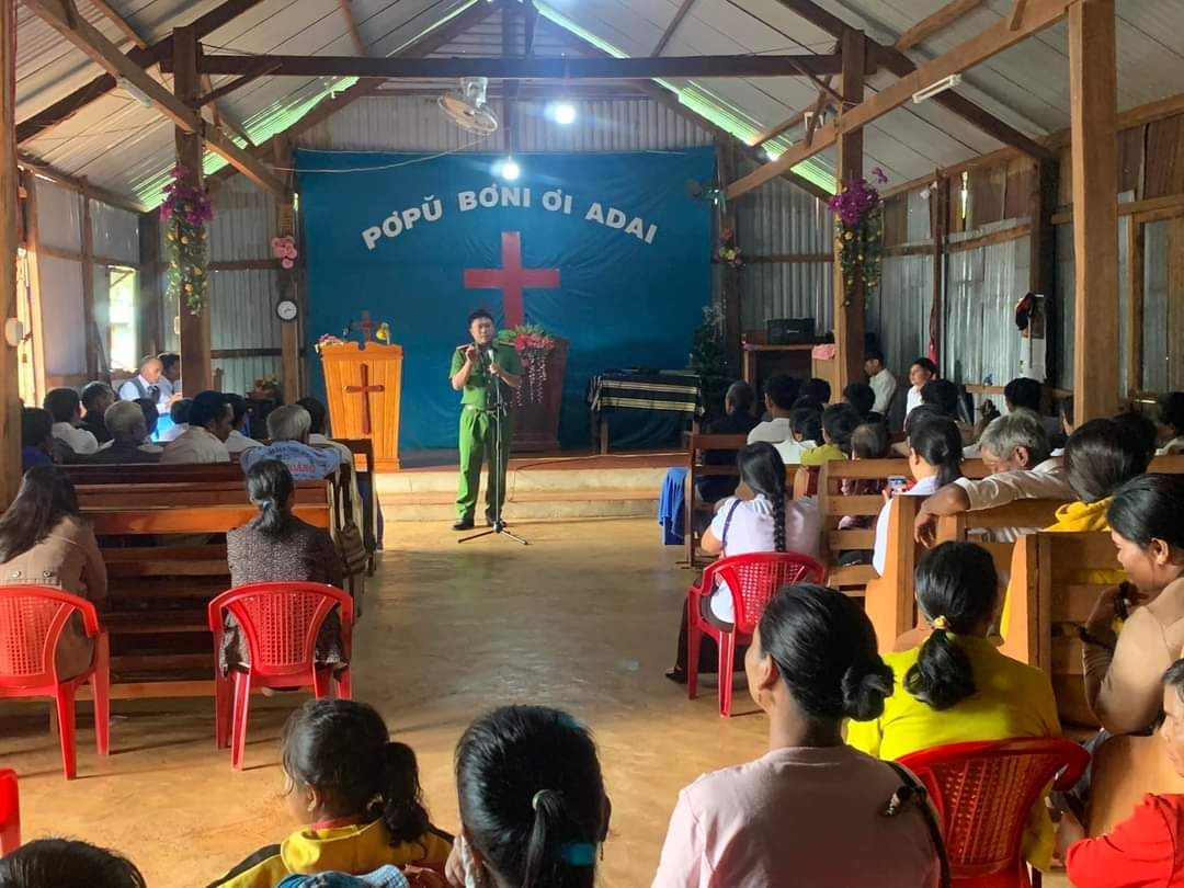 Tại buổi tuyên truyền có sự tham gia của hơn 200 cán bộ và người dân trên địa bàn (tín đồ của điểm nhóm TL MN-VN) về pháp luật 2022, trong đó nhấn mạnh về công tác phòng chống trốn vượt biên qua CPC; Công tác phòng chống tội phạm về hình sự - ma tuý; Công tác cấp đổi căn cước công dân, PCCC CNCH và thu hồi vũ khí vật liệu nổ; Công tác đảm bảo an toàn giao thông đường bộ; Phong trào toàn dân bảo vệ an ninh tổ quốc.
