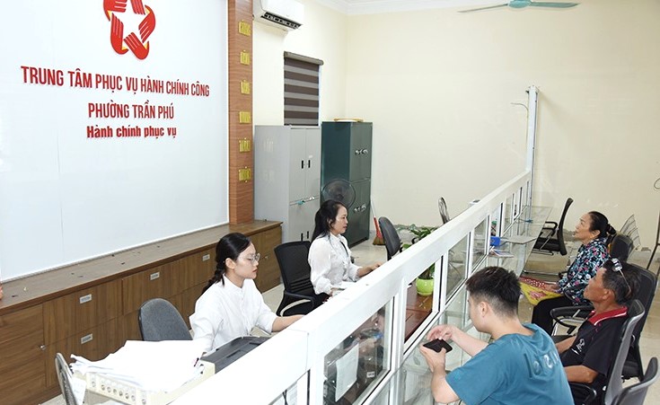 Giờ làm việc tại Trung tâm hành chính công phường Trần Phú, tỉnh Hà Tĩnh. Ảnh: BHT