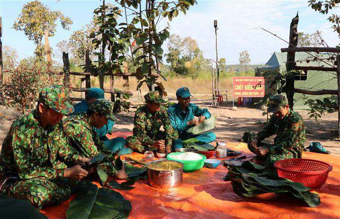 Trải tấm bạt dưới tán cây rừng, các chiến sỹ mỗi người một tay, lau lá dong, cắt thịt lợn, trộn đều nếp, xới khô đậu xanh ngâm sẵn, vót lạt để đủ nguyên liệu gói bánh chưng. Những chiếc bánh chan chứa tình đồng đội, mang nặng tình cảm gia đình lần lượt được gói đẹp đẽ. Các anh dự kiến gói thêm bánh để tặng bà con dân tộc thiểu số đi làm rẫy ngang qua.