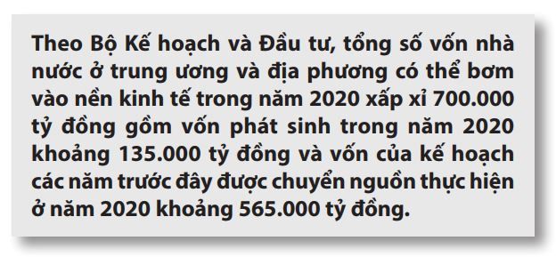Theo Bộ Kế hoạch và Đầu tư, tổng số vốn nhà nước ở trung ương và địa phương có thể bơm vào nền kinh tế trong năm 2020 xấp xỉ 700.000 tỷ đồng gồm vốn phát sinh trong năm 2020 khoảng 135.000 tỷ đồng và vốn của kế hoạch các năm trước đây được chuyển nguồn thực hiện ở năm 2020 khoảng 565.000 tỷ đồng. Như vậy, nếu theo Bộ Kế hoạch và Đầu tư, địa phương nào giải ngân dưới 60% bị sẽ cắt giảm vốn và tạm ứng 20% vốn phát sinh năm 2020, thì tổng khối lượng tiền đầu tư công các năm trước và năm 2020 được giải ngân trong nửa cuối năm 2020 là 366.000 tỷ đồng, xấp xỉ 15,6 tỷ USD.