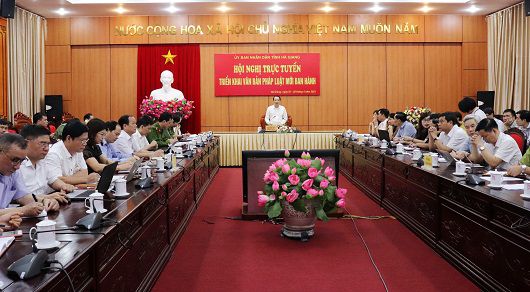 Sáng ngày 01/4, UBND tỉnh đã tổ chức hội nghị trực tuyến 3 cấp trên địa bàn tỉnh triển khai một số văn bản pháp luật mới ban hành. Dự hội nghị có đồng chí Trần Đức Quý, Ủy viên BCH Đảng bộ tỉnh, Phó Chủ tịch UBND tỉnh; các báo cáo viên của Bộ Công an, Bộ Tư pháp; lãnh đạo các sở, ngành, tổ chức chính trị - xã hội của tỉnh, các huyện, thành phố, xã, thị trấn.