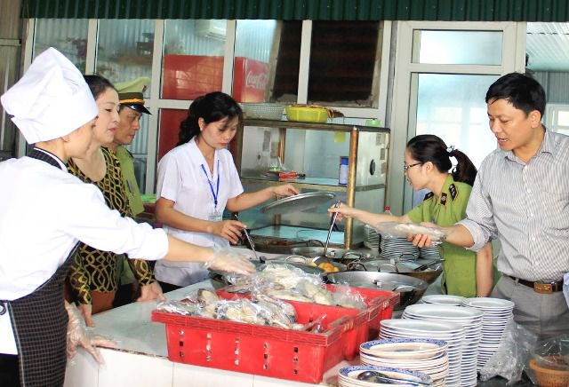 Lực lượng liên ngành của Hà Nội kiểm tra an toàn thực phẩm tại một bếp ăn tập thể