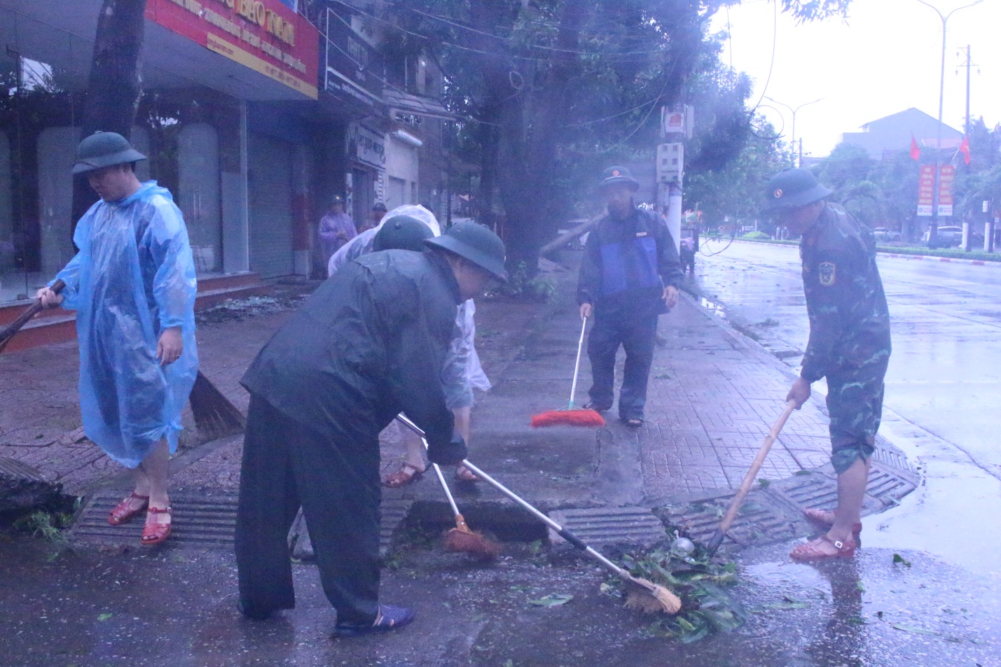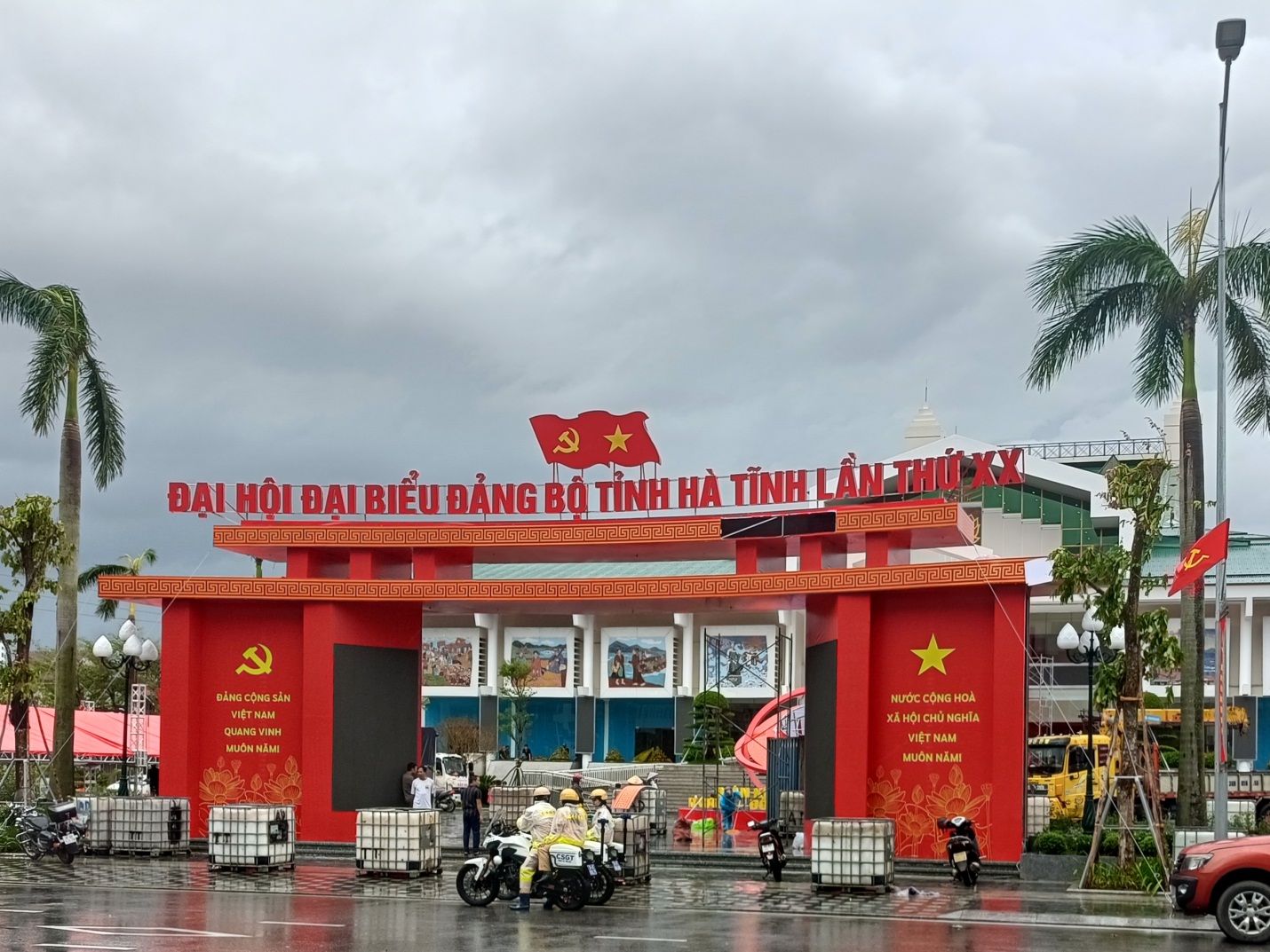 Đúng như bài hát, sáng tinh mơ sau bão, dưới sự chỉ đạo khẩn trương của lãnh đạo tỉnh, các ban ngành hàng trăm lực lượng, quân đội, công an, phối hợp với gần 300 CBCN môi trường đô thị, Cán bộ văn hóa, có mặt từ 5 giờ sáng trên khắp mọi nẽo đường hướng về Quảng trường Trung tâm văn hóa, Điện ảnh và xúc tiến Du lịch tỉnh. Chỉ sau một buổi làm việc, đường phố đã rực đỏ trở lại. Cờ Đảng, cờ Tổ quốc tung bay hiên ngang trong gió, sẵn sàng chào đón ngày hội lớn của Đảng bộ và nhân dân Hà Tĩnh.