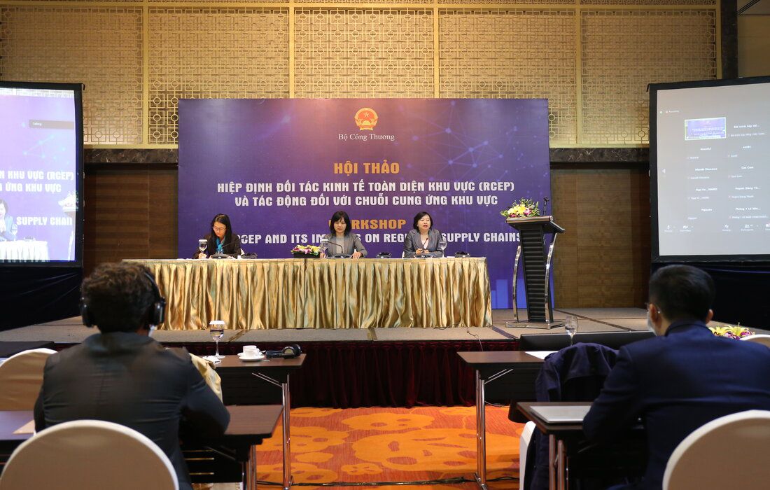 Bộ Công Thương vừa tổ chức Hội thảo “Hiệp định RCEP và tác động đối với chuỗi cung ứng khu vực” nhằm giới thiệu về Hiệp định RCEP và hướng dẫn cách hiểu các cam kết về thương mại hàng hoá và quy tắc xuất xứ cho các Bộ, ban, ngành liên quan, cũng như một số Hiệp hội và cộng đồng doanh nghiệp. Hội thảo được tổ chức dưới hình thức trực tiếp kết hợp trực tuyến.