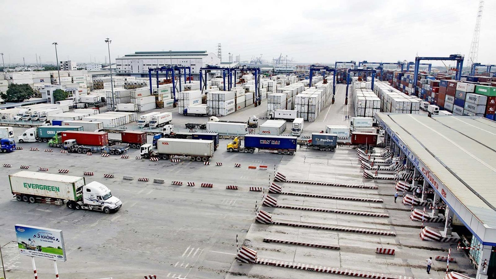 Hoạt động vận chuyển hàng hóa tại Tân Cảng Sài Gòn, thuộc Tổng công ty Tân Cảng Sài Gòn (Quân chủng Hải quân) - doanh nghiệp quốc phòng tiên phong đi đầu trong sản xuất, phát triển hiệu quả kinh tế biển và logistics_Ảnh: TTXVN
