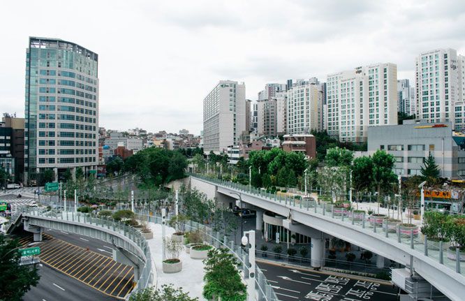 Một góc con đường trên cao được biến thành công viên tại Seoul