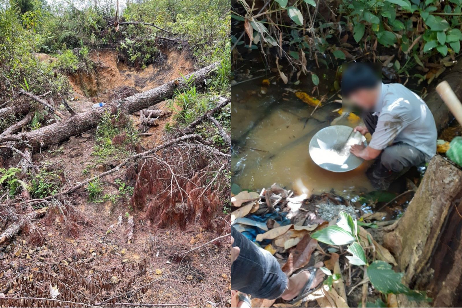 Ngày 4/11, từ nguồn tin phản ánh, chúng tôi theo chân người dân lên đến tiểu khu 31, xã Đăk Nhoong (huyện Đăk Glei) và tiểu khu 133, xã Đăk Long (huyện Đăk Glei) ghi nhận hoạt động khai thác vàng trái phép diễn ra với tình trạng đất đá bị đào bới, cây cối ngổn ngang. Khi phát hiện chúng tôi, các đối tượng khai thác trái phép đã bỏ chạy.